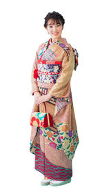 ①振袖 ②長襦袢(半衿付き)③重ね衿 ④袋帯 ⑤帯揚げ ⑥帯締め ⑦草履バッグ ⑧髪飾り ⑨ショール(ファー)